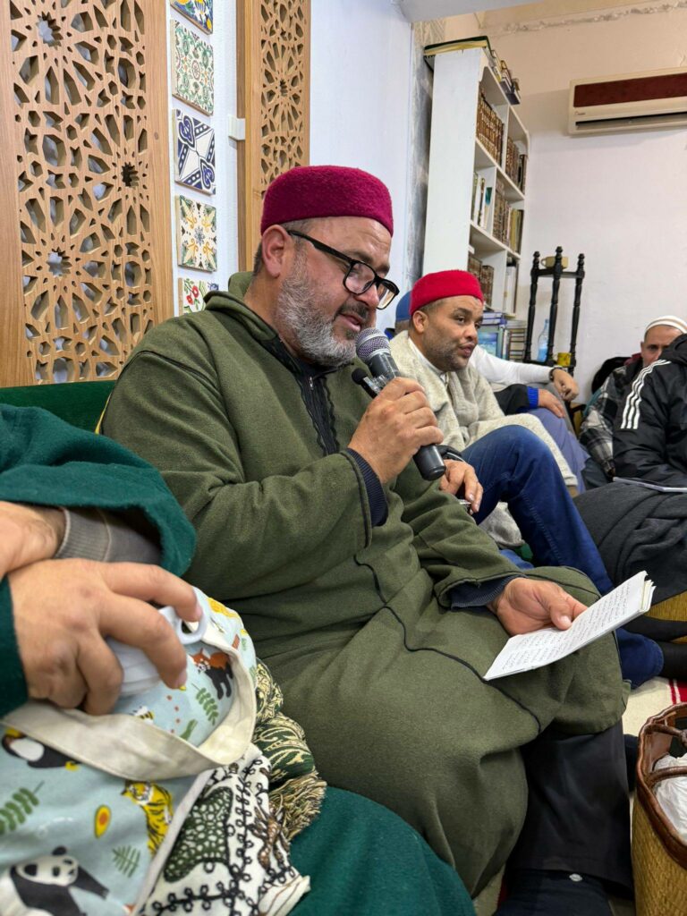 ومما أنعم الله به علينا أن كان له في المركز الزيتوني لإحياء التراث مجلسٌ أسبوعي متواصل و كان ذلك من بركات سيدي أبو فاطمة، مدير المركز، كما يحب أن يناديه و كانت علاقته به علاقة الأب مع إبنه يقول له “أبو فاطمة أنا أعطيتك كل شيء” و كان يسلم له في جُلّ الأمور يقول في كم كذا موضع “سِر أبو فاطمة و إِحْنا وراك” و ذلك من تواضعه رحمه الله و إعمالا لسُنّة الوراثة لهذا المنهج و كأنه إشارة.. و كان رحمة الله عليه لا يحب الدعاوي فكان قوله دائما لابنه أبو فاطمة “دعك من الدعاوي العريضة كلمة خادم العلم الشريف تكفيك فشرفنا في هذا المنهج لا يكون إلا بالعمل” مع نسبة العلم لأهله و توقير العلماء.